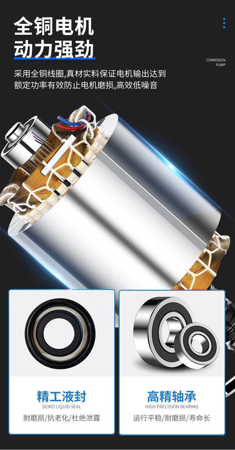 NHCN槽內(nèi)泵泵體采用FRPP PVDF材質(zhì)能耐高溫耐腐蝕雙層干式液封設(shè)計(jì),可防止馬達(dá)軸承被化學(xué)氣體侵蝕無(wú)軸封設(shè)計(jì),不會(huì)因空運(yùn)轉(zhuǎn)而損壞適合蝕刻噴洗設(shè)備.廢氣洗滌塔冷卻循環(huán)及搭配過(guò)濾器使用。