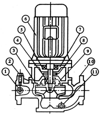 1.低轉速管道泵與電機同端蓋,軸向尺寸縮短,結構簡單。