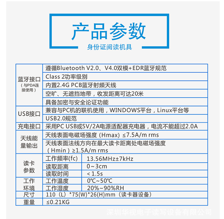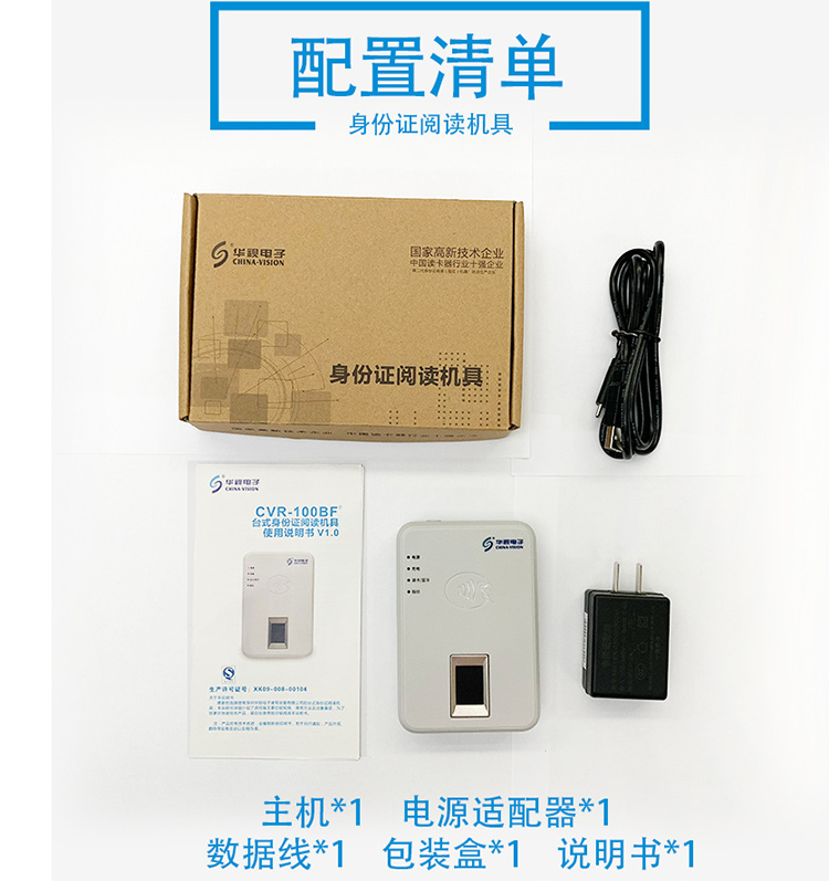 (*由于產品升級或其他原因,華視CVR-100BF身份證閱讀器產品實際參數有可能變更,以實際產品為準。本文中的所有陳述、信息和建議也不構成任何明示或暗示的擔保)
