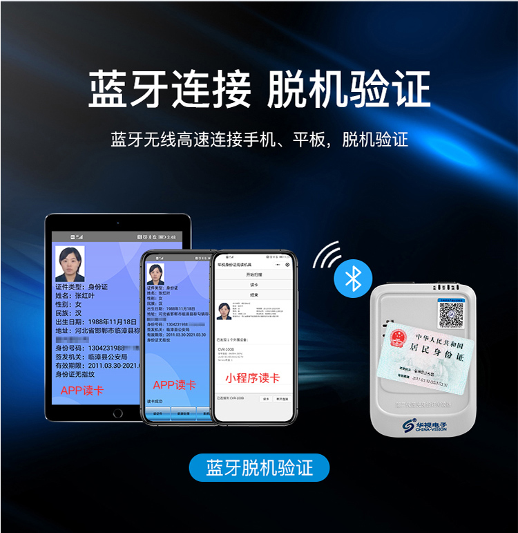 華視CVR-100B藍牙身份證讀卡器體積小巧,方便攜帶,用于鏈接手機,平板讀取身份證信息