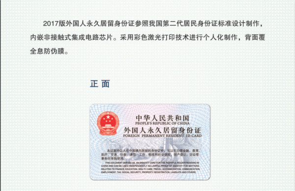 5月27日,公安部公告將于2017年6月16日起簽發(fā)2017版外國人永久居留身份證。同時停止簽發(fā)現(xiàn)行外國人永久居留證。永久居留身份證是外國人在我國境內(nèi)證明自己身份的合法證件,是永久居留外國人享受在華資格待遇的有效憑證,可以使用第二代居民身份證閱讀機具讀取。屆時,永久居留身份證的實用效能將大幅提升,新增的機讀核驗功能也將進一步便利持證人在華工作和生活,為永久居留外國人提供良好的社會服務,切實增強永久居留外國人的獲得感。