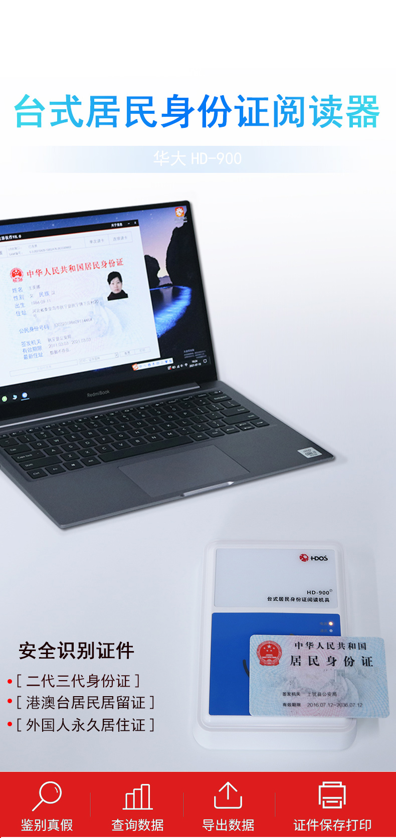 華大HD-900身份證閱讀器-臺式身份證讀卡器-二代證身份識別儀