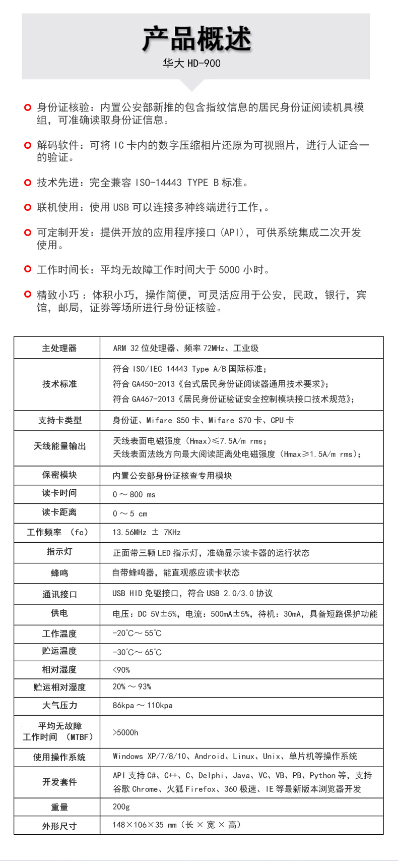 (*由于產品升級或其他原因,華大身份證讀卡器產品實際參數(shù)有可能變更,以實際產品為準。本文中的所有陳述、信息和建議也不構成任何明示或暗示的擔保)